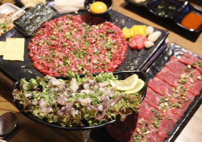 육회 + 산낙지 + 육사시미 + 화로구이 세트