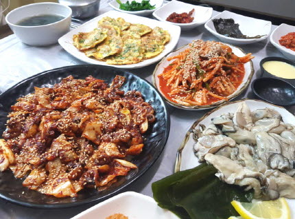 쭈꾸미굴볶음 + 굴전골 + 굴무침 + 굴전 + 생굴회