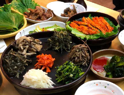 7가지 산채나물 + 양념더덕구이 + 쌈 + 된장찌개