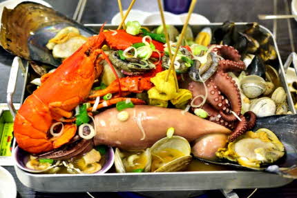 랍스터 1마리 + 기본해산물 + 전복 3미 + 문어 + 닭 + 새우 + 야채
