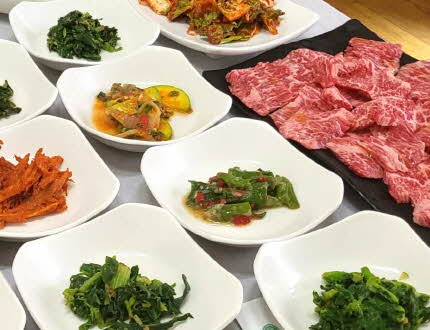 횡성한우 특수부위 1인 100g + 나물반찬 + 메밀전 + 마조림 + 오징어전골 + 잡곡밥